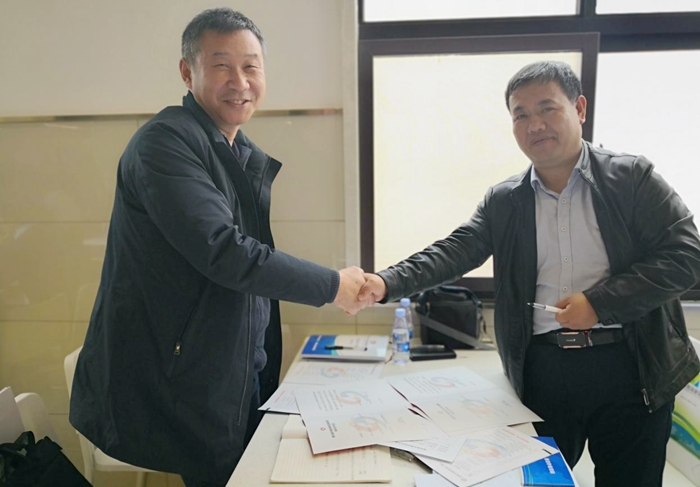18日当天,黄风林与宋绍富带领科研团队赴咸阳参加供、需双方对接会,经过2小时的商谈,黄风林教授团队的解决方案获得技术需求方陕西华浩轩新能源科技开发有限公司的认可,双方现场签订了120万元“烷基化、芳构化装置技术改造”技术转让意向合同。