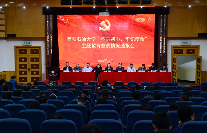11月14日下午,学校在雁塔校区学术报告厅召开“不忘初心、牢记使命”主题教育整改情况通报会。校党政领导赛云秀、李天太、李延平、张木、雷西合、杨战社、陈军斌、苏文甫、程永清、樊晓民出席会议。校党委副书记、校主题教育领导小组副组长雷西合主持会议。