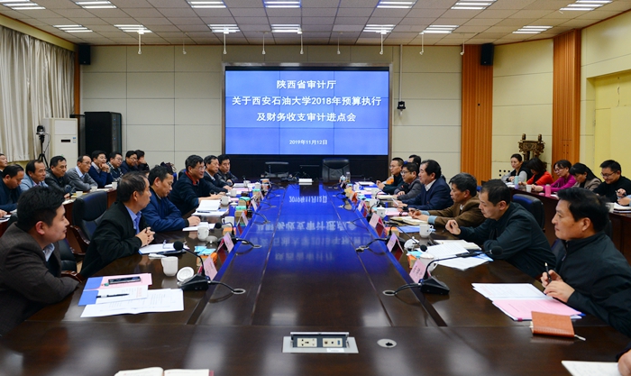 11月12日下午,陕西省审计厅2018年预算执行及财务收支审计进点会在beat365雁塔校区第二会议室召开。省审计厅副厅长王志高一行7人,beat365校长李天太、副校长杨战社、总会计师樊晓民参加会议。会议由审计厅二级巡视员宋宝中主持。