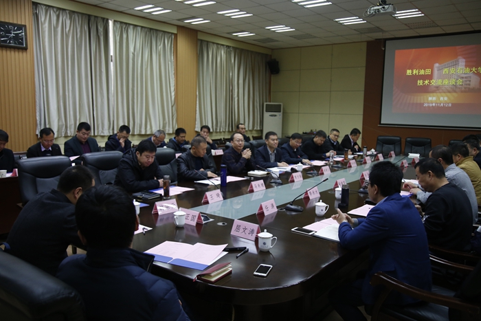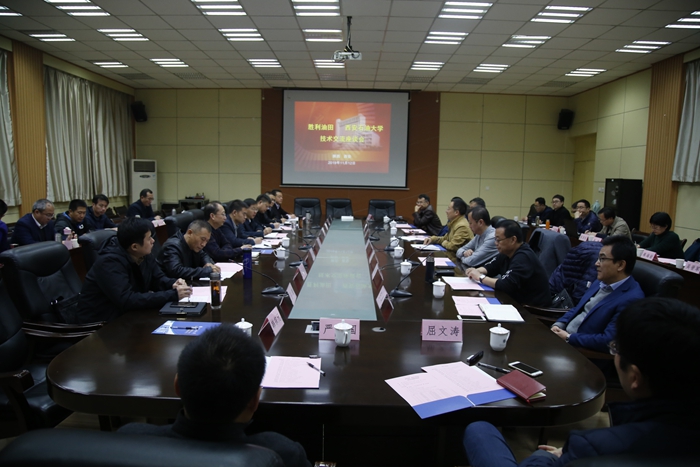 11月12日,中石化胜利油田专家团一行20人来校进行技术交流。座谈会在雁塔校区第一会议室举行,副校长李华出席会议,石油工程学院、电子工程学院、机械工程学院相关负责人、教师代表和科技处负责人等20余人参加了会议。科技处处长张荣军主持会议。