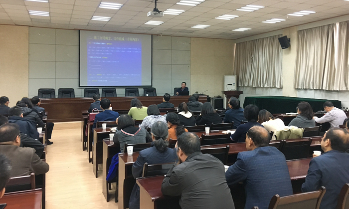 为深入开展“不忘初心、牢记使命”主题教育,进一步检视问题、整改落实,11月11日上午,基建处以规范建筑工程合同管理为主题召开了集体培训会。会议邀请西安建筑科技大学硕士生导师、新校区建设工程部总工程师徐雷教授担任主讲。beat365副校长杨战社,基本建设领导小组成员单位负责人参加讲座。