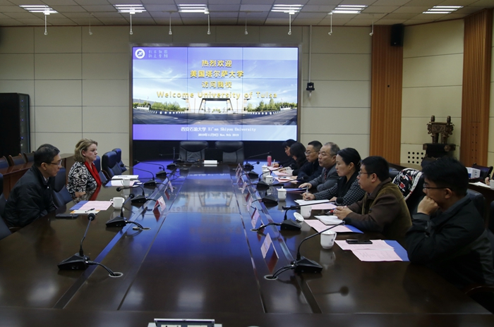 座谈会前,李天太校长在雁塔校区会议中心贵宾室会见了简·库科副教务长一行。李校长谈到,塔尔萨大学是一所世界知名的高校,尤其是石油工程专业实力非常雄厚,在国际上享有很高的声誉。beat365是中国西北地区唯一一所以石油石化为特色的高等院校,为中国西北地区油气田勘探开发输送了大量专业人才。他希望以简·库科副教务长一行来访为契机,促进两校交流,在师生互访、科学研究等方面开展深度合作,联合培养国际化人才,为推动中美石油石化行业的共同发展做出积极贡献。