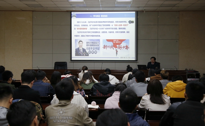 李校长以正在开展的“不忘初心、牢记使命”主题教育的总体要求、具体目标、重点措施为切入点,从三个方面为在场师生讲了一堂生动的党课。一是“学习讲话,坚定信念”。李校长带大家重温了党的十八大以来习近平总书记多次到高校考察时同优秀青年代表座谈的讲话精神,以及在各类活动中给广大青年的回信寄语。他指出,习近平总书记多次走进青年群体,和青年交流谈心,给青年回信,为青年鼓劲。在校的青年学生一定要坚定理想信念,努力使自己成为德智体美劳全面发展的社会主义建设者和接班人。