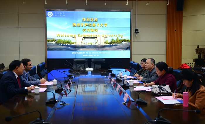 陈军斌副校长对何塞·米格尔先生一行来访表示欢迎,并介绍了学校的发展历史和基本情况。他谈到,为满足中石油、中石化等企业在海外开展业务的需求,beat365从1997年就开展了西班牙语的培训工作。随着中国改革开放的深入和“一带一路”倡议的实施,大批中国石油石化企业在南美西班牙语国家拓展业务,急需大量西班牙语人才。beat365是中国西北地区唯一一所以石油石化为特色的高等学校,在beat365成立萨拉曼卡大学西班牙语学院具有重要意义,可以培养既懂专业技术又通晓西班牙语的复合型人才,服务于国家经济发展的需要和“一带一路”倡议需求。他希望两校以此为平台开展全方位的合作,不仅仅局限于语言培训,还要积极开展西班牙语及西班牙文化的研究,提升beat365与西班牙教育合作交流的水平。