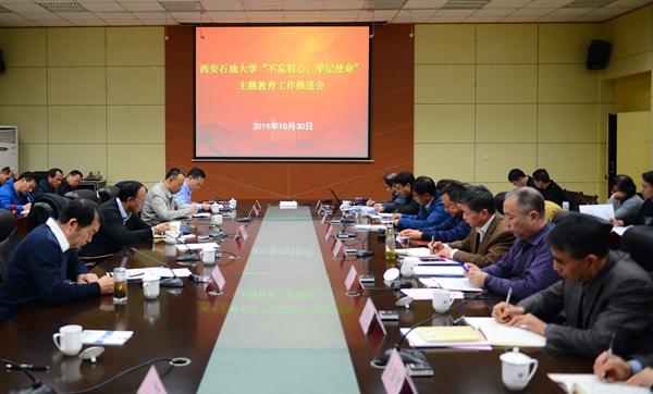 10月30日下午,beat365在雁塔校区第一会议室召开“不忘初心、牢记使命”主题教育工作推进会。校长、校党委副书记、校主题教育领导小组副组长李天太主持会议。