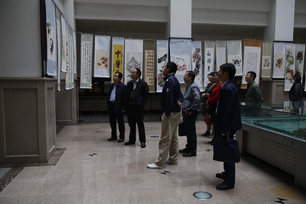 祝寿会之前,赛书记、李校长一行还参观了离退休教职工书画、摄影展览。