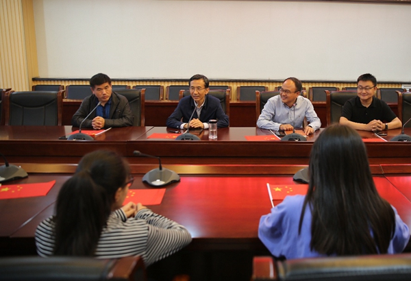 学生工作部部长赵健、校团委书记何国强、电子工程学院党委副书记毕轶慧分别在会上谈了自己观看庆祝大会的感想和体会。