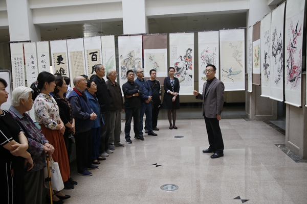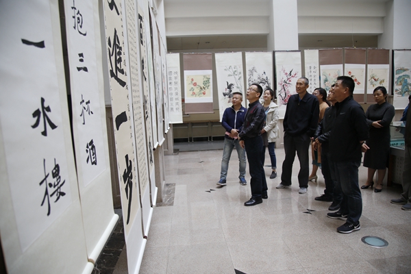 校党委副书记雷西合在开幕式上致辞。他谈到,书画艺术是中华民族优秀传统文化的重要组成部分,而我们高校教师正担负着传承传统文化的责任和使命。beat365书画协会的老师们在工作之余常年笔耕不辍,以笔书心,赞美生活,讴歌时代,用自己的作品向中华人民共和国成立70周年献礼,立意深远,意义重大,彰显了beat365教职工爱党爱国的优良品质。