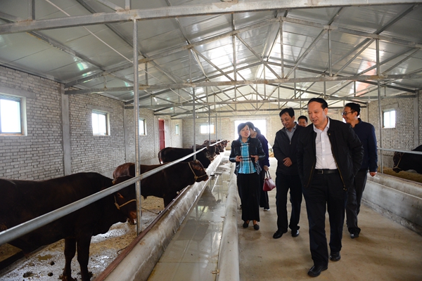 座谈会后,赛书记一行实地考察了学校帮扶坚固村建设的养牛场,仔细查看了养牛设施和饲养情况,对进一步扩大饲养规模、提高出栏率提出了建议。同时还考察了坚固村农产品加工厂,并对提高农产品加工质量、扩大销售提出了针对性措施。