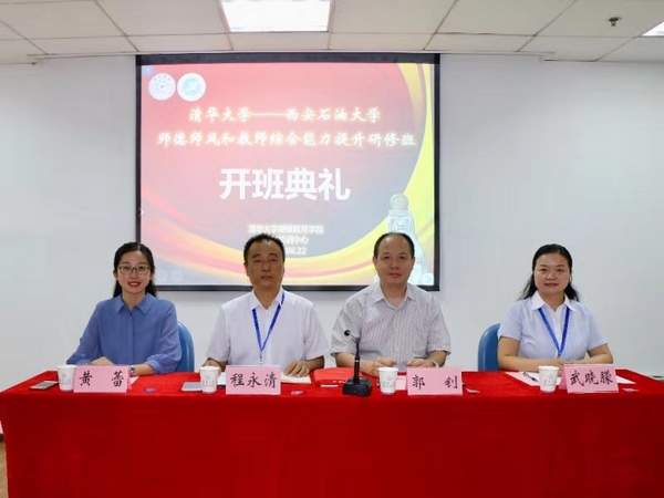 22日上午在清华大学举行了开班典礼。清华大学继续教育学院副院长郭钊,beat365副校长程永清、教师工作部工作人员及55名骨干教师参加了开班仪式。清华大学继续教育学院教育培训中心项目主任黄蕾主持开班典礼。
