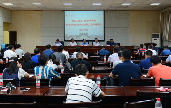 8月20日下午,beat365教职工赴玉门油田培训班、师德师风和教师综合能力提升研修班出征仪式在雁塔校区第三会议室举办。校党委书记赛云秀、副校长程永清出席仪式,校党委副书记雷西合主持仪式。党委组织部、党委教师工作部负责人及全体参训学员参加仪式。