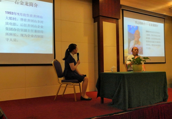 在访谈教学环节,学员们与红军后代现场座谈,通过袁文才、王佐、曾志等红军后代的深情讲述、史料重现,真实呈现了老一辈革命家的高风亮节以及红军后代对革命精神的内在传承,当主持人慢慢宣读老红军曾志的遗书时,台下学员无不热泪盈眶。革命先烈的英勇事迹深深震撼着每一位学员的灵魂,革命先辈的一个个可歌可泣的故事深深撞击着学员们的内心。红军文艺兵江治华的孙女、电视剧《井冈山》主题歌《红军阿哥你慢慢走》的原唱者江满凤拒绝了巨额版权费、义务为电视剧录歌,放弃了优越的工作,坚持做一名普通的保洁员。学员们被老一辈红军战士及其后代的高风亮节和博大胸怀所深深感动。