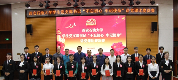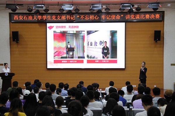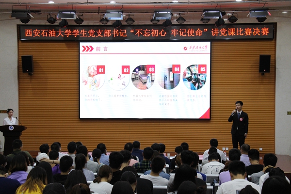 6月20日晚,学校2019年度学生党支部书记“不忘初心、牢记使命”讲党课比赛在鄠邑校区就业指导中心多功能厅举行。学校部分党群部门负责人担任比赛评委,各院(系)党组织书记、副书记、兼职组织员和全校近300名党员代表观摩了比赛。