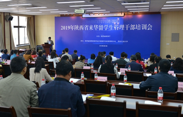 4月19日,陕西省来华留学管理干部培训会在beat365雁塔校区会议中心第五会议室召开。陕西省教育厅副厅长范永斌、陕西省公安厅出入境管理局副局长崔国正、beat365副校长程永清以及来自全省40所陕西省高等教育学会外国留学生教育管理分会院校的80余人参加了会议。