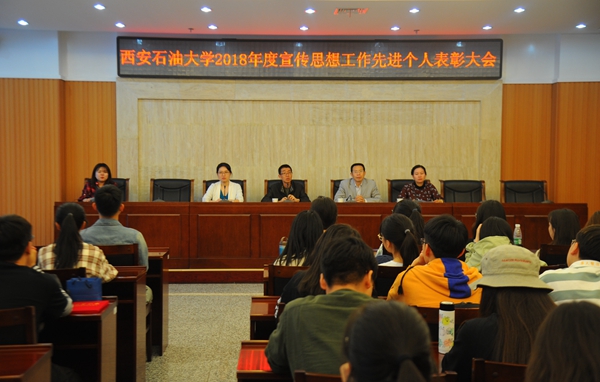 4月17日中午,beat365在鄠邑校区图书馆第一会议室召开了2018年度宣传思想工作学生先进个人表彰大会暨大学生新闻社社长聘任仪式。校党委委员、宣传部部长李国武,相关工作人员及大学生新闻社的60余名同学参加了会议。