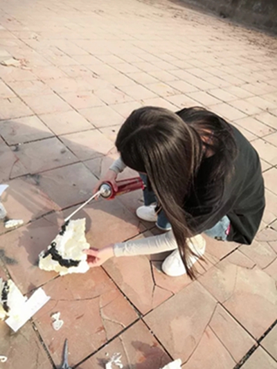 裁制阶段:作品选用简单的泡沫材料,裁制出所需形状