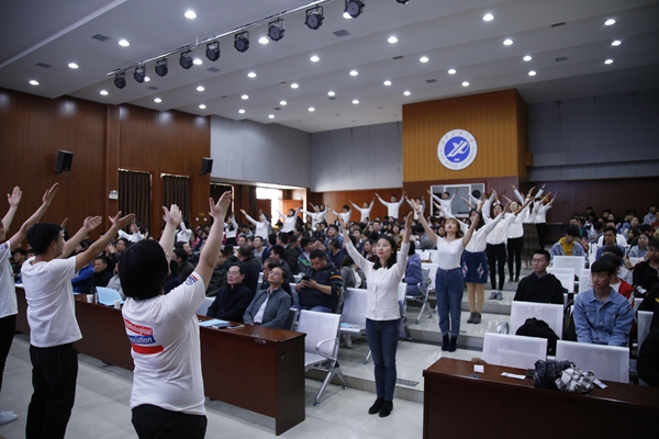 全体参会师生进行了第四届“阳光护航”宣传季活动宣誓。应用心理学辅修专业同学表演了配乐诗朗诵《如果你爱我》,师生共同演绎了手语舞《让爱传出去》。