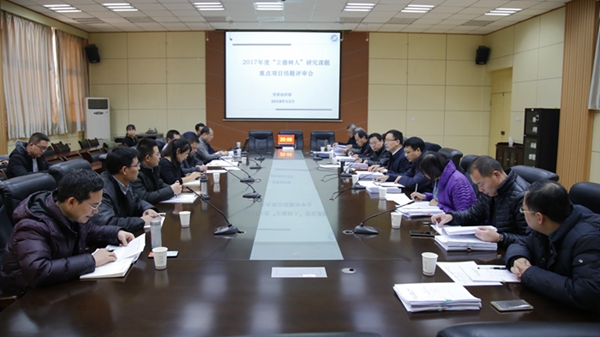 12月13日下午,学校在雁塔校区第一会议室召开2017年度“立德树人”党建研究课题重点项目结题评审会。校党委副书记雷西合出席会议并讲话,党委组织部部长常青林主持会议。部分党政部门负责人、院系书记担任评委,各重点项目组成员参加了评审会。