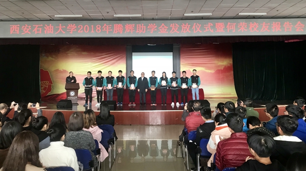 据悉,腾辉助学金设立于2006年,十三年来累计发放助学金达130余万元,资助学生770余人次。何荣校友坚持每年都要来校给学生发放助学金、赠送100本书、作1场报告。