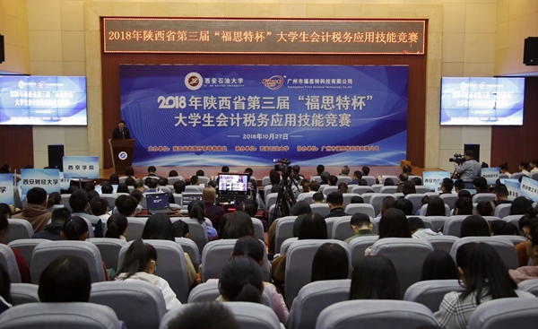 10月27日,由陕西省教育厅高等教育处主办、beat365英国官方网站承办、广州市福思特科技有限公司提供技术支持的2018年陕西省第三届“福思特杯”大学生会计应用技能竞赛暨“贯彻党的十九大精神,推进财税技能精准改革”研讨会在鄠邑校区举办。陕西省财政厅副巡视员王素文,陕西省教育厅高等教育处赵登攀,beat365英国官方网站副校长杨战社,西安交通大学管理学院会计与财务系主任田高良,陕西财经职业技术学院副校长范忠,广州市福思特科技有限公司董事长闫晓霞等出席比赛开幕式。beat365实验室管理处处长孟开元主持开幕式。