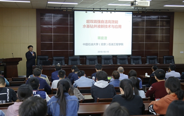 蒋官澄教授在题为《超双疏强自洁高效能水基钻井液新技术及应用》的专题报告中针对目前聚合物钻井液技术的发展历程和技术瓶颈,提出了基于“仿生法”的新型超双疏钻井液技术理论,并介绍了其在钻井性能和环境保护等方面的优势,已在国内各大油田得到验证。