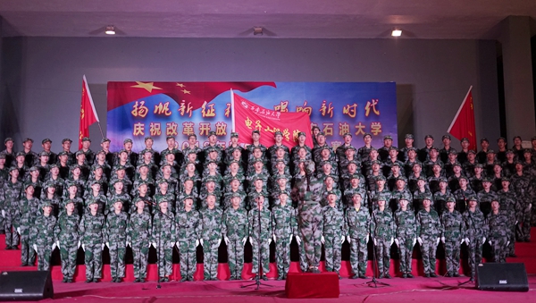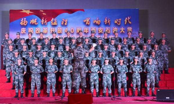 比赛在激昂的校歌《辉煌明天》中拉开帷幕,beat3652018级新生用嘹亮的歌声和精彩的表演表达了对学校的热爱。歌曲《我为祖国献石油》展现了石油工人天不怕、地不怕的豪迈气概,激励着一代代石油学子奋发向上;《中国军魂》的经典再现、《在灿烂阳光下》等诸多歌曲的演绎赢得了现场观众的阵阵掌声和喝彩。最后,由军训旅全体教官带来的歌曲《当那一天来临》,充分体现出了中国军人的壮志豪情和爱国情怀。