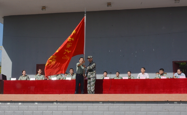 校党委副书记张木向军训旅授旗