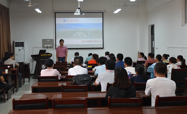 9月7日上午,材料科学与工程学院在鄠邑校区1号院系楼204教室召开2018级新生家长座谈会。学院党政领导赵健、周勇、马文庆、张骁勇,各系、中心、科室主任及部分新生家长参加了会议。