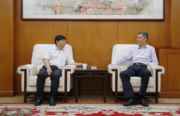 座谈会之前,屈展校长在贵宾室会见了王建廷副校长一行。