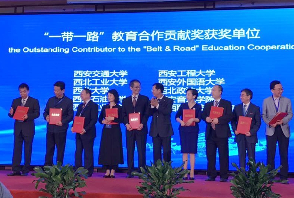 开幕式由陕西省教育厅副厅长赵昶葆主持,省教育厅厅长王建利作主旨发言。陕西省政府副秘书长高阳宣布2018丝绸之路教育合作交流会开幕。大会为10个机构和9位外籍人士颁发了“一带一路”教育合作贡献奖,beat365及beat365俄语外教扬古托娃•丽达•洛别尔托夫娜双双获奖。