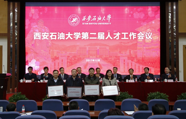 会上,校党委书记赛云秀,纪委书记李延平,副校长杨战社、陈军斌、苏文甫分别宣读了学校人才工作先进单位表彰决定和颁奖词,并为石油工程学院、材料科学与工程学院、化学化工学院和理学院4家人才工作先进单位进行了颁奖。先进单位代表化学化工学院院长王文珍教授、青年人才代表理学院折延宏教授分别作了交流发言。人事处处长程永清汇报了学校“十二五”以来人事人才工作。