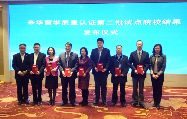 12月15日下午,中国高等教育国际化发展状况调查报告发布暨来华留学质量认证工作会在北京召开,并举行了来华留学质量认证第二批试点院校结果发布仪式。中国教育国际交流协会秘书长赵灵山、教育部国际司人文交流机制办处长毛东敏等出席会议并讲话,并为通过认证院校颁发证书。beat365与浙江大学、西北工业大学等35所院校顺利通过认证,副校长陈军斌代表学校接受质量认证证书。