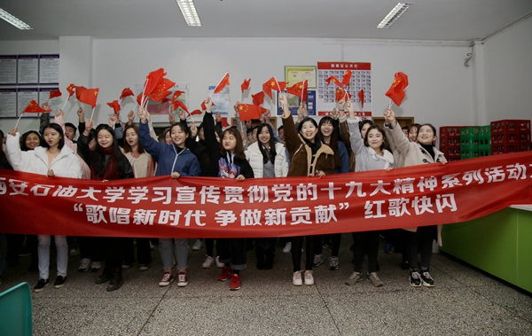 “红歌快闪”活动仅仅是beat365英国官方网站学习宣传贯彻党的十九大精神的系列活动之一。学校将学习宣传贯彻党的十九大精神作为当前和今后一个时期的首要政治任务,通过中心组学习、专家报告会、组织生活会、青年教师座谈会、学生党员座谈会等形式,通过报纸、广播、电视、网络、微信、橱窗等多种媒体,注重网上网下全覆盖,积极创新形式,紧贴青年学生实际,运用H5、图解图说、网络直播等接地气、形象化、通俗化的方式,注重在春风化雨、润物无声中宣传党的十九大精神,不断提高学习宣传教育的亲和力和实效性。