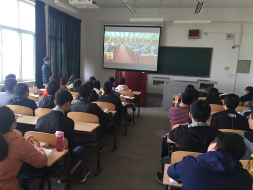 3.召开会议深入学。学院要求各教工、学生党支部分别召开专题会议,对原文详细品读,系统性地学习党的十九大精神。同时,在全体学生范围内召开“从‘新’开始学党的十九大精神,牢记使命做大时代先锋”主题团日活动,确保党的十九大精神覆盖到每位教职工、每位同学。