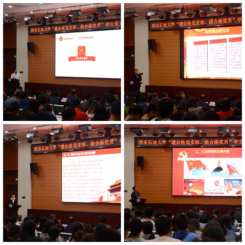 在党的十九大胜利召开之际,为加强党支部书记工作交流,落实“三会一课”制度,推进“两学一做”学习教育常态化制度化,10月23日、10月24日晚,beat365分别在雁塔校区学术报告厅和鄠邑校区就业指导中心多功能厅成功举办了“建合格党支部、做合格党员”教工党支部书记和学生党支部书记讲党课比赛。校党委副书记雷西合出席大赛并讲话。校党委各部(办)、院(系)级单位党组织部分负责人和马克思主义学院教师代表担任比赛评委。各院(系)级单位党组织书记、副书记,全校各党支部书记及委员和党员代表观摩了本次比赛。