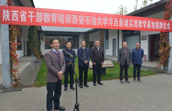 10月25日上午,“陕西省干部教育培训beat365英国官方网站实践教学基地”揭牌仪式在沣西新城举办。沣西新城党委副书记、纪委书记张志杰,beat365党委副书记雷西合出席揭牌仪式。沣西新城党委组织部部长姜勤发主持仪式。34名2017年秋季陕西省干部教育培训“提升系统思维能力,加快陕西追赶超越步伐”专题研讨班学员参加了仪式。