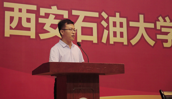 石油工程学院2016级研究生王力同学代表全校研究生发言。计算机学院刘珍同学代表2017级新入学研究生发言。