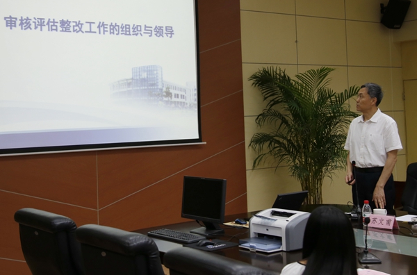 下午,反馈会在第一会议室召开,闫剑群组长代表专家组向学校进行了意见反馈。专家组认为,学校高度重视本科教学审核评估整改工作,围绕本科教学的基础地位和人才培养的中心地位,坚持20字评建方针,半年来开展了大量工作,从整改措施、整改内容、整改目标等方面就本科教学审核评估整改工作进行了系统、全面地部署,建立了整改的总台账、各负责单位的分台账和整改工作进度计划表,也建立了有效的工作机制,并按计划积极推进整改工作,取得了比较显著的效果。专家组同时对学校下一步的整改工作提出了五点具体意见和建议:一是进一步强化审核评估整改工作的针对性;二是进一步加强教学规章制度的执行力度;三是进一步发挥教学质量保障体系的作用;四是进一步加强和优化师资队伍建设;五是进一步优化课堂教学组织形式,改革课程考评方式。