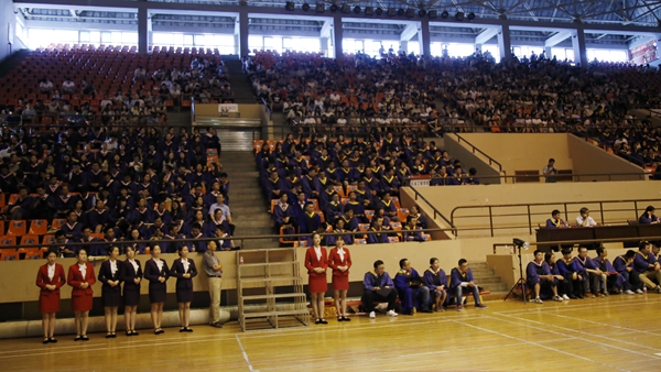 在学位授予仪式上,屈展校长为2017届500余名硕士研究生逐一授予学位、颁发学位证书,并与每一位毕业研究生合影留念。