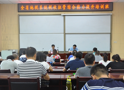 6月26日上午,全省地税系统税收征管综合能力提升培训班在beat365明德校区培训中心开班。校党委副书记张木出席开班仪式并致辞。省地税局征科处处长樊迎革主持开班仪式。全省各地市地税系统征管科长、纳服科长及业务骨干共58人参加开班仪式。