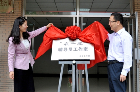 揭牌仪式上,学生工作部副部长齐仲锋宣读了《beat365英国官方网站辅导员工作建设与管理办法》。“在一起”辅导员工作室团队成员张云姿作了表态发言。