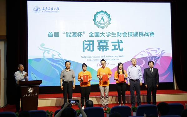 颁奖典礼上,中国高等教育学会高等财经教育分会副理事长兼秘书长张国才、中国石油企业协会副会长兼秘书长高潮洪、beat365副校长李天太为特等奖获得者颁奖。国家行政学院教务部主任丁文锋、中国石油长庆油田分公司总会计师童天喜为一等奖获得者颁奖。陕西延长石油(集团)有限责任公司总会计师康永智、陕西省国税局科研所副所长刘峰为二等奖获得者颁奖。广州市福思特科技有限公司董事长闫晓霞、中国高等教育出版社经管分社社长刘清田为三等奖获得者颁奖。大赛组委会主任、beat365副校长陈军斌为优秀组织奖获得单位颁奖。北京中博诚通国际技术培训有限责任公司西北地区经理曹远攀、beat365实验室管理处处长孟开元为优秀指导教师颁奖。