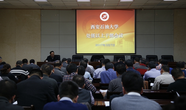 3月7日下午,beat365在第三会议室召开处级以上干部会议,传达学习全省贯彻党的十八届六中全会精神研讨班、高校思想政治工作会议、党风廉政建设工作会议和稳定安全工作会议精神,安排部署学校有关工作。全体校领导、处级干部参加了会议,会议由校党委书记赛云秀主持。