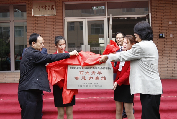 10月15日上午,由校团委主办的“书香校园”读书节之“石大青年智慧加油站”揭牌仪式在新校区一号学生公寓大学生服务中心举办。校党委书记赛云秀、副书记雷西合,西安图书发行业协会会长、陕西嘉汇汉唐图书发行有限责任公司董事长唐代伟出席活动。学生工作处、校团委负责人及100余名学生参加了活动。