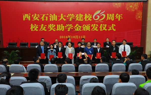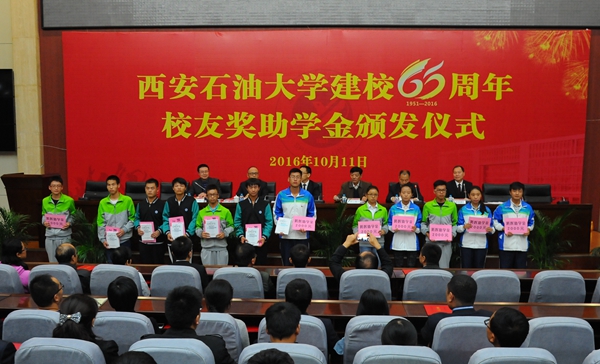 校党委副书记雷西合在致辞中向设立“弘石基金”的80级校友代表单勇和设立“腾辉助学金”的88级校友何荣表示衷心感谢,向获得“弘石基金优秀教师奖”的老师表示祝贺,向获得“腾辉助学金”的同学提出了希望。他说,学校一直秉承“好学力行、自强不息”的校训,为地方经济发展和石油石化行业培养了大量的优秀毕业生;而在学校的建设发展过程中,又离不开校友和社会各界力量的支持和帮助。希望广大师生以获奖教师和优秀校友为榜样,努力学习,积极实践,实现综合能力的全面提高。