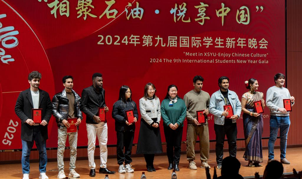 12月29日晚,由国际教育学院组织的“相聚石油・悦享中国”2024年第九届国际学生新年晚会在鄠邑校区弘石学术报告厅成功举办。校党委副书记张木、副校长程永清出席晚会,程永清致新年贺词。西安市公安局出入境管理局、鄠邑区沣京路派出所等嘉宾,beat365党政办公室(鄠邑校区管理办公室)、研究生工作部、教师工作部、计算机学院、国际教育学院等部门和院(系)负责人,以及200余名国际学生欢聚一堂,共赏国际文化盛宴。
