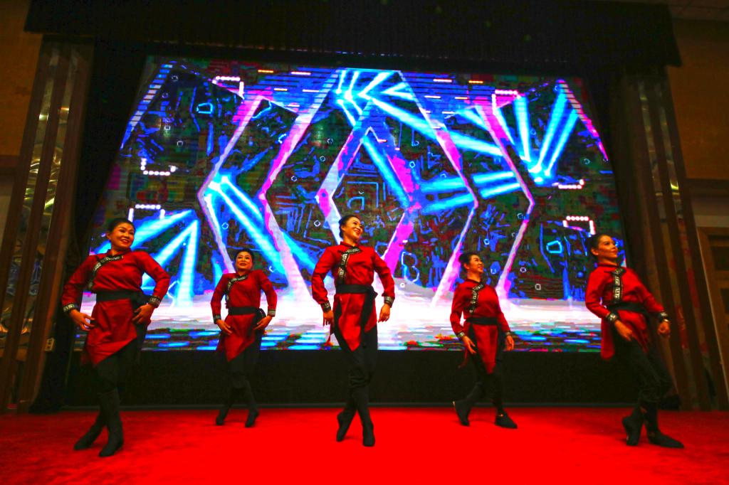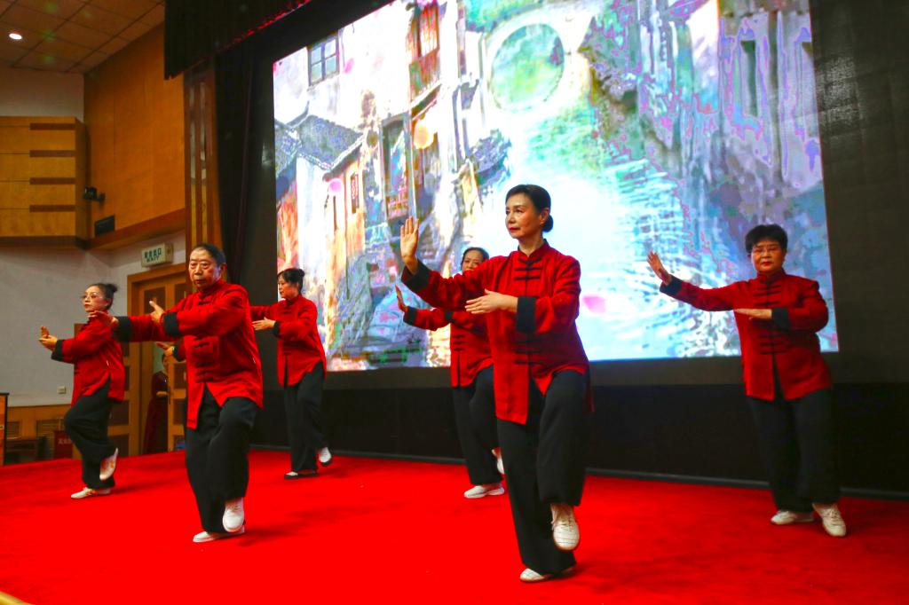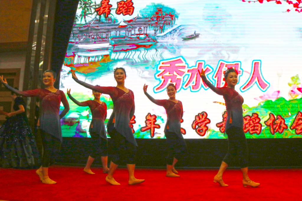联欢会在老年大学舞蹈协会带来的开场舞《盛世欢歌》中拉开序幕。老年大学朗诵协会的老同志们表演的配乐诗朗诵《我和我的祖国》,表达了离退休老同志对党的无比热爱和深厚感情;古典舞神韵提沉《秀水伊人》、古典舞身韵基训《手眼结合》、蒙古舞基训《硬肩、柔肩、笑肩》、女生小合唱《美丽的左江我们的家乡》、男生小合唱《南屏晚钟》等节目,充分展示了老年大学的教学成果和老同志热爱生活的良好精神面貌;杨氏太极拳28式,葫芦丝合奏《北江美》,展示了离退休职工的多才多艺。老同志们带来的古风瑜伽《鸿雁》,表演者身形柔软,达到了专业水准,赢得了阵阵掌声。大家在一片欢歌笑语声中共同喜迎2024年新年的到来。