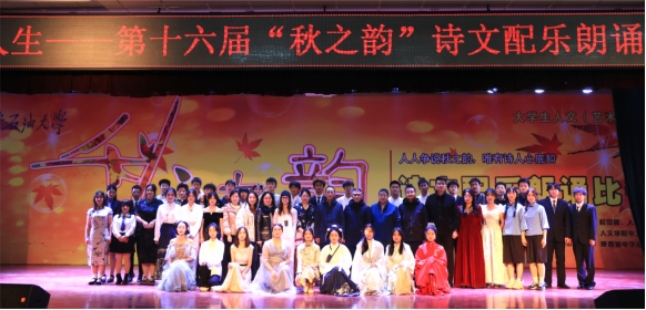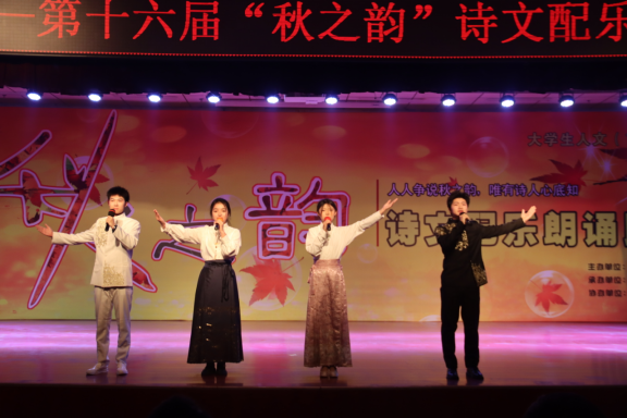 12月29日晚,由校团委、人文学院、教务处和教师工作部主办,人文学院中文系、校学生会承办,陕西省中华经典诵写讲beat365英国官方网站基地协办的“经典里的人生”第十六届“秋之韵”诗文配乐朗诵比赛在beat365鄠邑校区腾辉大学生活动中心成功举办。校党委副书记张木、副校长张君涛,相关院系、职能处室负责人及400余名师生观看了比赛。