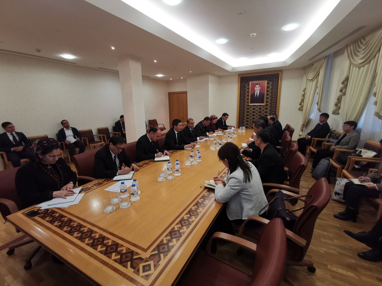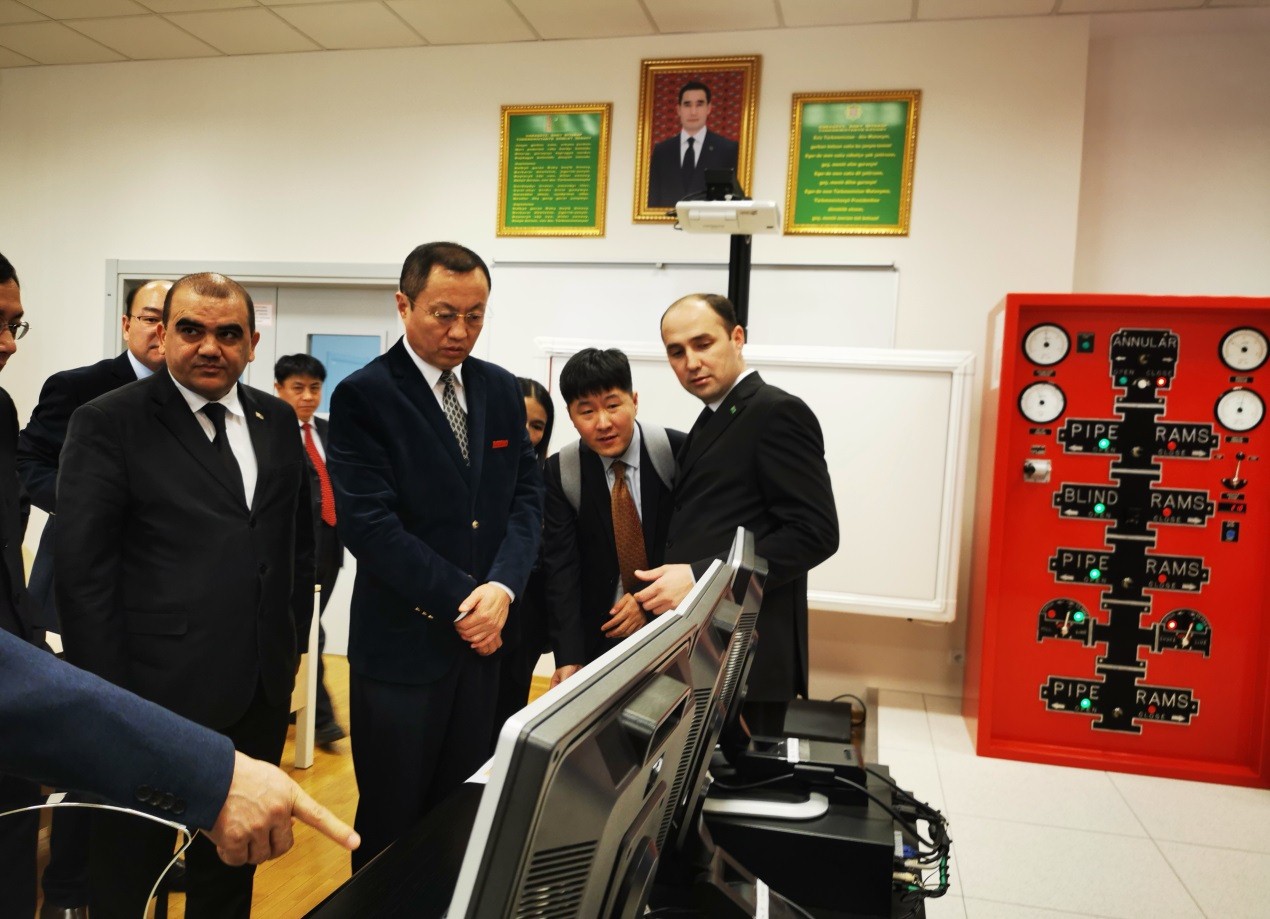 在“鲁班工坊”建设合作院校——卡卡耶夫国际油气大学,该校校长阿塔马诺夫(ATAMANOV Yaylymovich)、教学副校长玛梅多夫(Mammedov Batyr)、科研副校长阿曼尼亚佐夫(Amaniyazov Yakupgeldi),学校教务处、科技处及相关院(系)负责人等十余人,先后与代表团举行了四次会晤。双方一是表达了积极合作意向,并一致同意将共同签署谅解备忘录和具体建设方案两份协议文件;二是共同现场实地考察,确定了“鲁班工坊”的实验室建设场地,并就装修事宜进行了讨论;三是共同逐条逐字讨论了框架协议文本,并根据访问期间双方的洽谈情况,对最新修订文本进行了讨论,同时提出了签署时间、地点的建议方案;四是共同确定了先期两个共建本科专业为地质资源勘查、信息系统与技术,并取得了该校课程设置清单;五是实地考察了该校图书馆、教室、实验室等,并根据建设专业现有设备情况,就初步设备清单进行了框架性讨论;六是就两校师生互换项目和派驻工作组相关工作进行了对接。