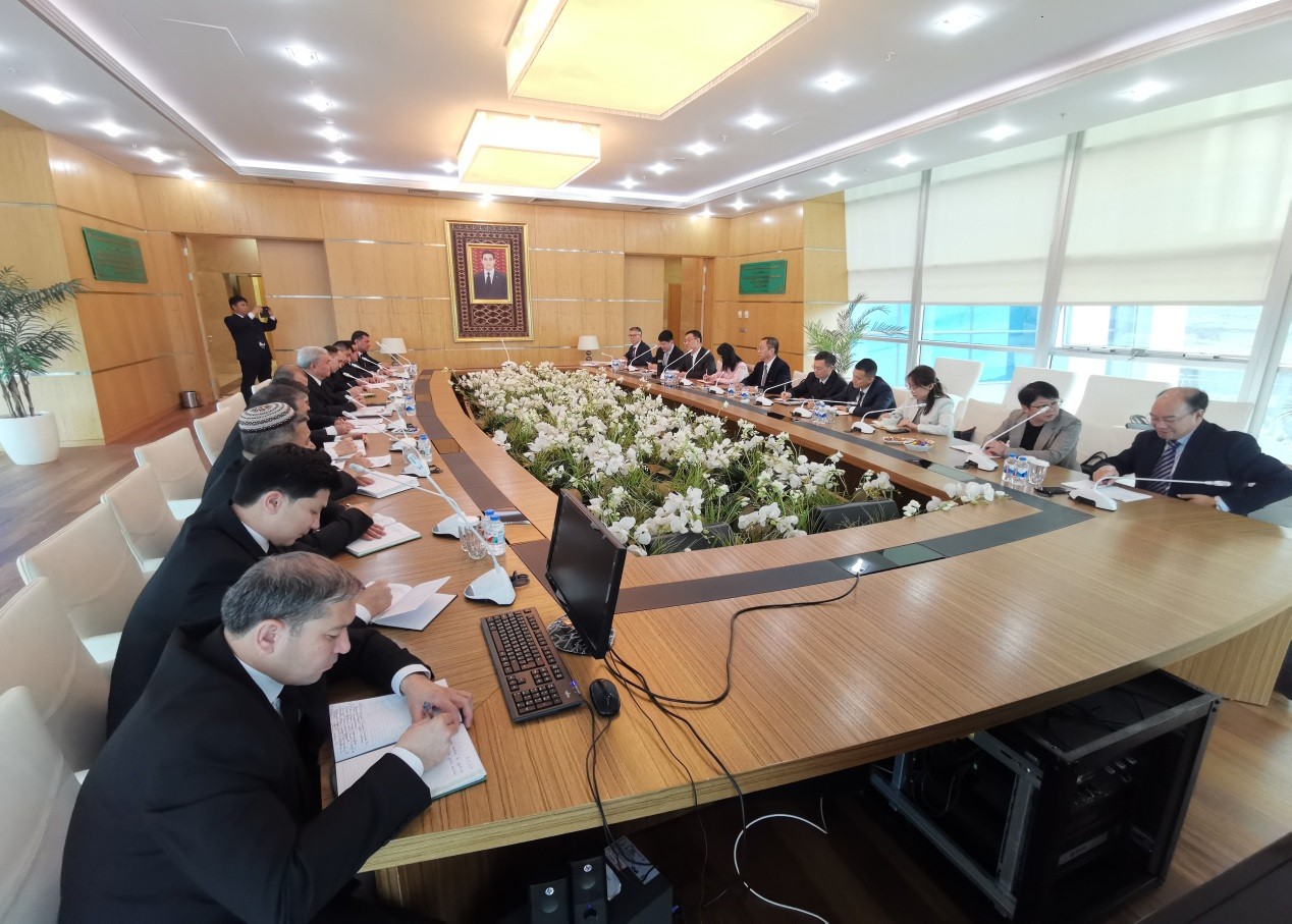 在土库曼斯坦教育部,教育部副部长阿塔耶夫•阿扎特•穆哈梅多维奇与教育部国际司、高等教育与职业教育司、科技司司长共同会见了代表团,卡卡耶夫国际油气大学教学副校长玛梅多夫、科研副校长阿曼尼亚佐夫陪同会谈。张荣军介绍了与卡卡耶夫国际油气大学就“鲁班工坊”项目洽谈情况,重点就“鲁班工坊”建设的重要意义及项目名称的重要性进行了说明,就“鲁班工坊”建设中需土国教育部协调推进的事项进行了阐述,并代表陕西省教育厅就师生赴土交流事宜进行了讨论。穆哈梅多维奇对代表团的到访表示欢迎,重申了建设“鲁班工坊”是落实中土两国元首达成的重要共识,希望双方合作院校充分交流协商,加快“鲁班工坊”建设,加强与中资企业密切合作,不断促进土库曼斯坦青年就业和国民经济发展;同时,阿塔耶夫对代表团关心的问题进行了解答,并表示将积极推进“鲁班工坊”建设事宜。